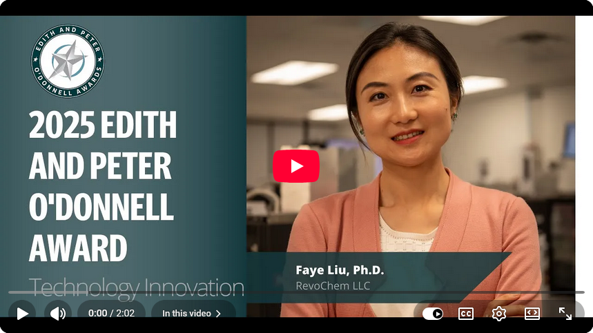 Visionary geochemist Faye Liu, Ph.D., Founder and Chief Executive Officer of RevoChem LLC, is the recipient of the 2025 Edith and Peter O'Donnell Award in Technology Innovation from TAMEST. She was chosen for pioneering geochemical fingerprinting technology to optimize energy production processes thousands of feet below the Earth's surface.